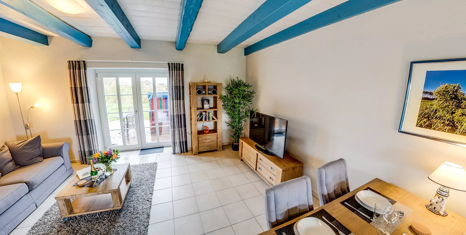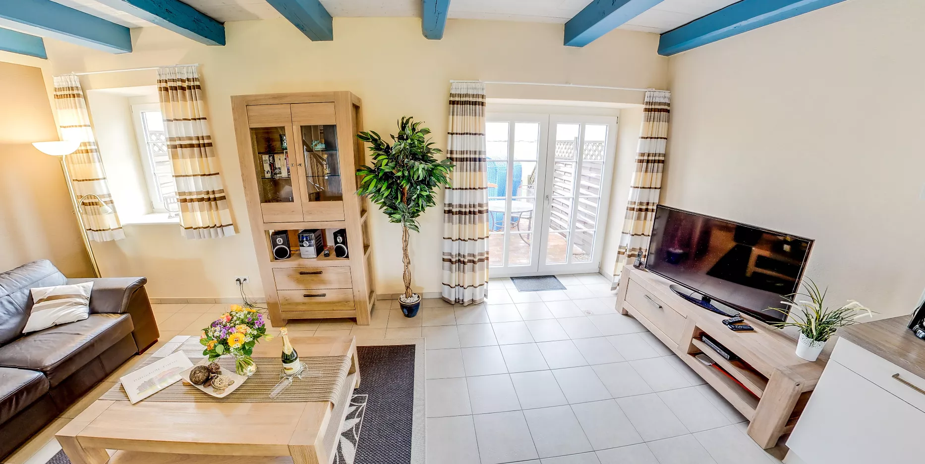 - gemütlicher Wohnraum mit Essbereich und Einbauküche. Kinderhochstuhl und Kinderbett bei Bedarf.